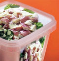 |  Newspring, подразделение компании Pactiv, выпустила серию контейнеров, этикетки на которых выполнены по новой технологии IML (In-Mold Labeling), изготавливающей контейнеры с этикетками без использования традиционных методов по выполнению печати.   В IML процессе этикетка, сделанная, как правило, из того же полимерного материала, что и продукция, вкладывается перед началом стандартного цикла литья в термоформы и под воздействием температуры образует единое целое с изделием. Можно создавать даже фотореалистичные изображения на стенках контейнеров и даже отличный читаемый шрифт. Тара доступна в размере 32, 38 и 48 oz. Сами контейнеры, изготавливаемые из полипропилена, доступны как в прозрачном исполнении, так и в белом или черном оформлении.